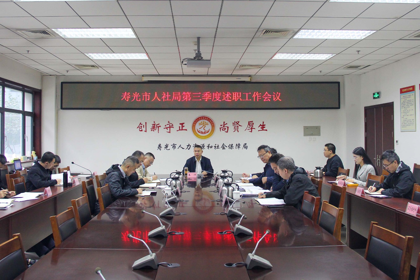 寿光融媒讯 10月20日,潍坊寿光市人力资源和社会保障局召开季度述职会议,系统总结第三季度工作成效,深入剖析存在问题,全面部署下一阶段重点任务。局党组书记、局长王帅主持会议并讲话,局领导班子成员、各科室负责人参加会议。